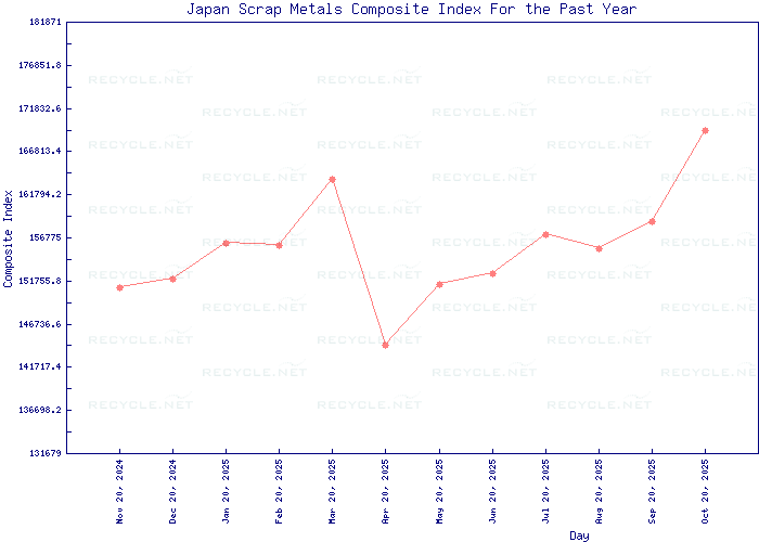 Japan Scrap Metals Composite Index for Monday Oct 20, 2025 169,322.60