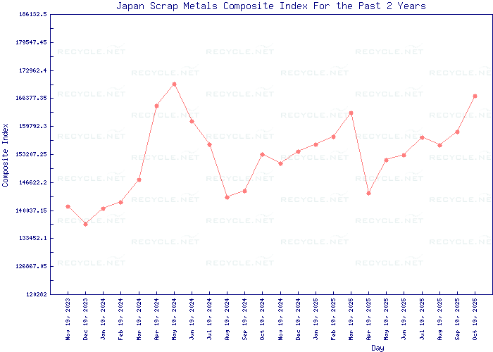 Japan Scrap Metals Composite Index for Sunday Oct 19, 2025 166,922.49